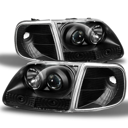 Fits 97-03 F150 Expedition Projector Headlights +Black Corner Signal Lights Set