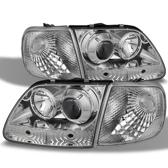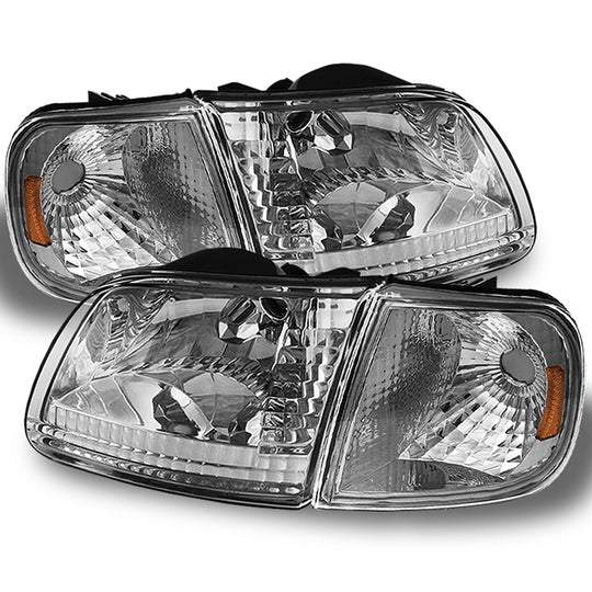 Fits 97-03 F150 Expedition Chrome LED Crystal Headlights+Chrome Signal Lights