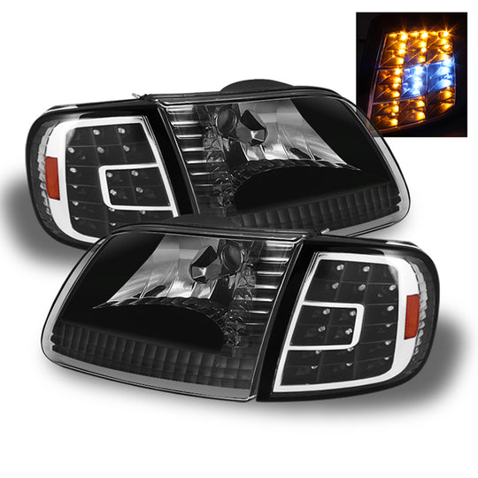 Fits 97-03 F150 F250Ld Expedition Black Headlights +Full LED Corner Signal Light