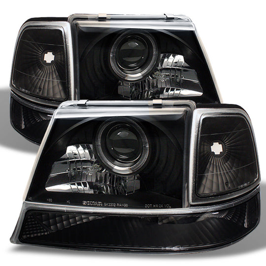Fits 98-00 Ranger Black Halo Projector Headlights+Black Clear Corner Signal Lamp