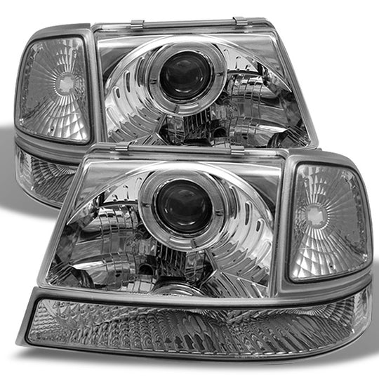 Fits 98-00 Ranger Pickup Truckchrome Clear Halo Projector Headlights Lamps Pair