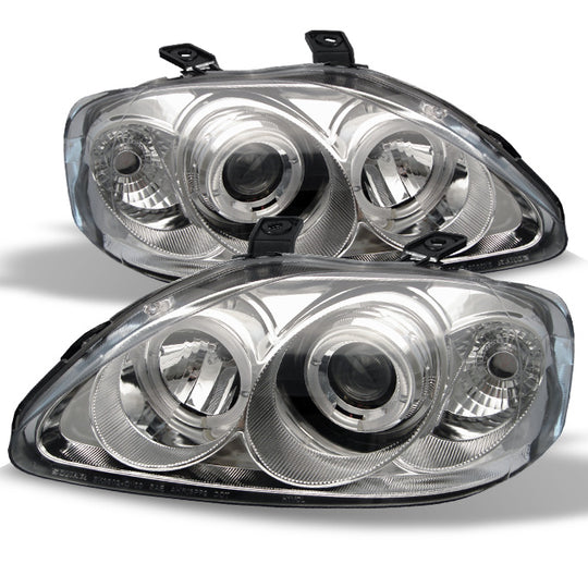 Fits 99-00 Honda Civic 2/3/4Dr Chrome Clear Halo Projector Headlights Lamps Pair