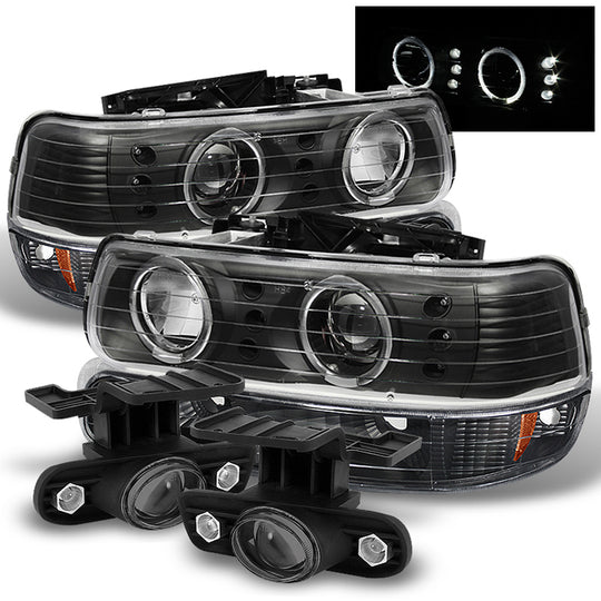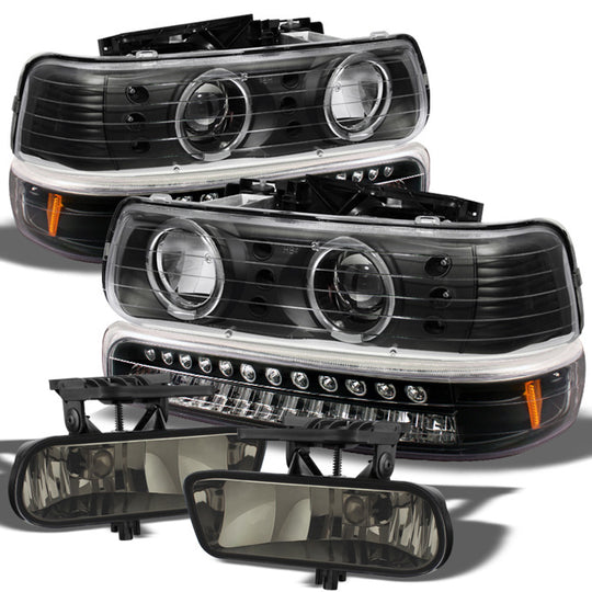 Fits 99-02 Silverado Black Halo Projector Headlights+Bumper Signal+Projector Fog