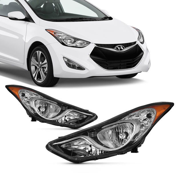 AKKON - Fits 2011 2012 2013 Elantra Sedan 4Door Black Halogen Type Headlights Driver Left + Passenger Right Pair USA Built