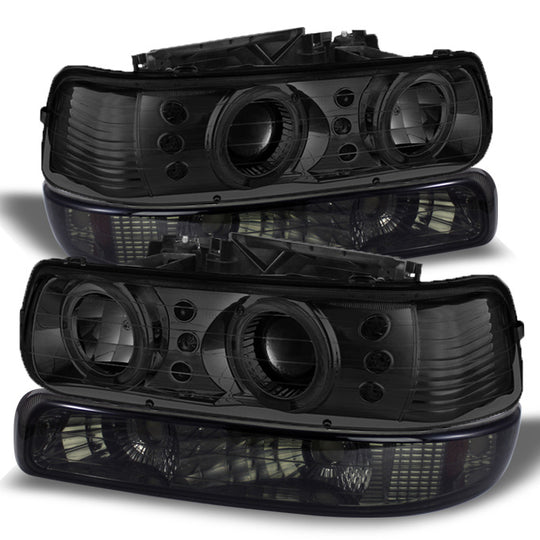 Fits Smoked 99-02 Silverado Halo Projector Headlights+Smoked Amber Bumper Signal