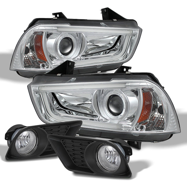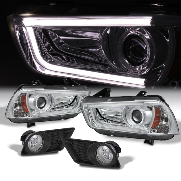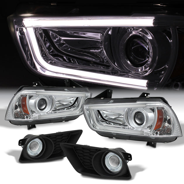 AKKON - Fits 2011-2014 Charger LED Light Tube DRL Projector Headlights + Fog Lamps [Chrome Housing]