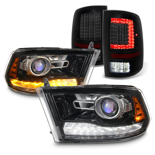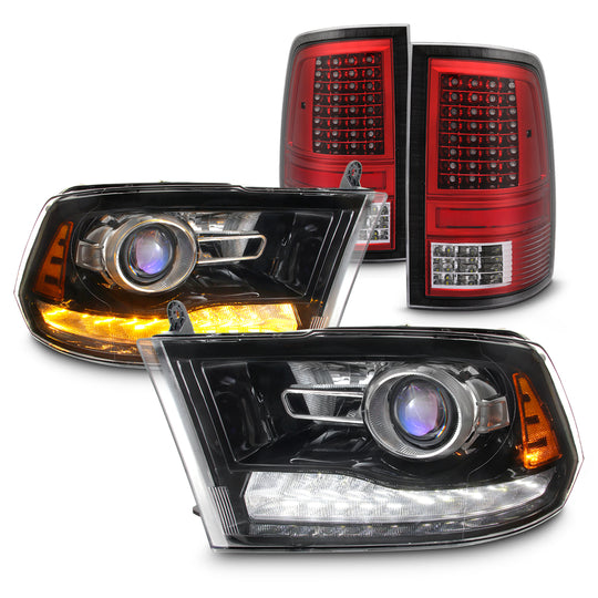 AKKON - Fit 09-18 Dodge Ram New LED DRL Projector Switchback Headlight & LED Red Housing Taillights Lamps
