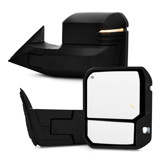 AKKON - Fit 2022 2023 2024 Toyota Tundra Power Adjusted Heated Turn Signal Light Blind Spot Signal Manual Folding Back Up Lamp Towing Mirror Pair Replacement