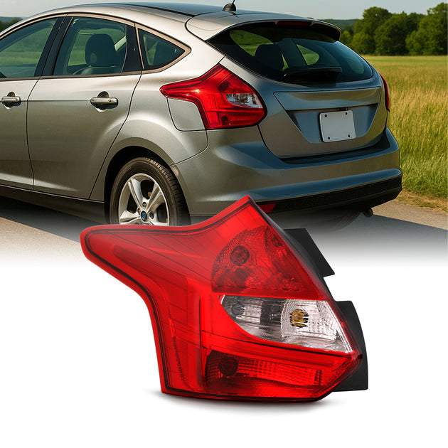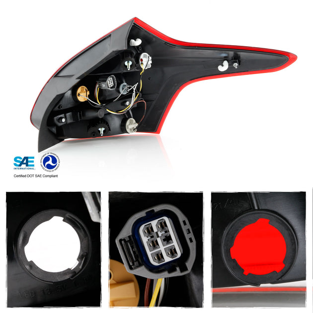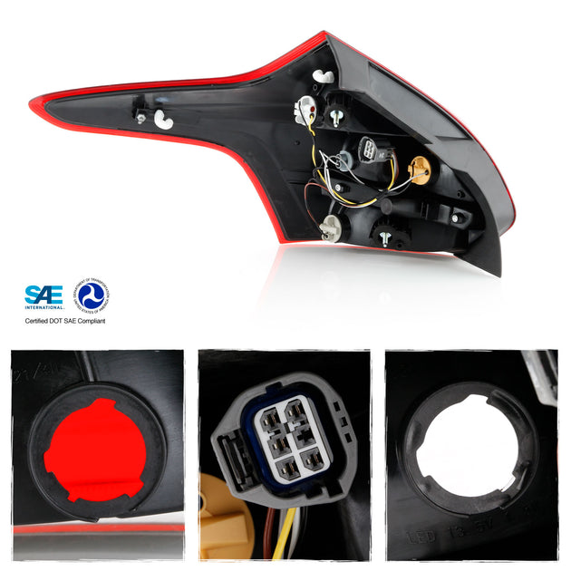 AKKON - Fits 2012 2013 2014 Ford Focus Hatchback 5DR Chrome Red Tail Lamp Brake Lights Driver Left Side Replacement