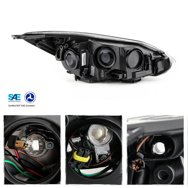 AKKON - Fits 2012-2014 Ford Focus 4Door Sedan Hatchback [Halogen Type] Black Trim Headlights Pair Driver Left+Passenger Right