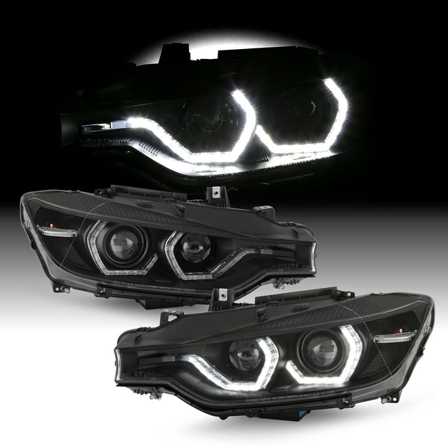 AKKON - Fits 2012-2015 BMW F30 320i 325i 328d 328i 335i ActiveHybrid 3 [HID/Xenon] w/ AFS LED Tube Projector Black Headlights