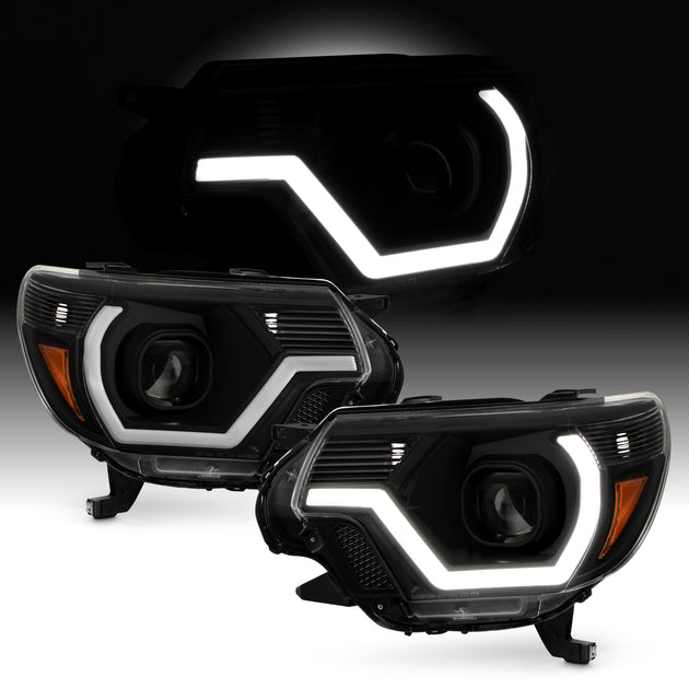 AKKON - Fits 2012-2015 Toyota Tacoma Pickup Truck [LED Tube Parking] Projector Black Headlights Pair Left+Right Replacement