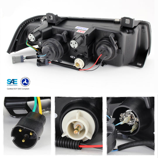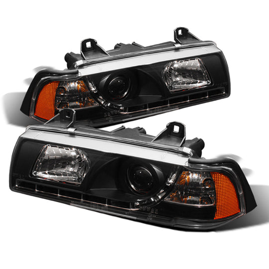 AKKON - Fit 1992-1998 BMW E36 3-Series 2-Door Models Black Projector Headlights Pair Housing w/ DRL & Corner Lights