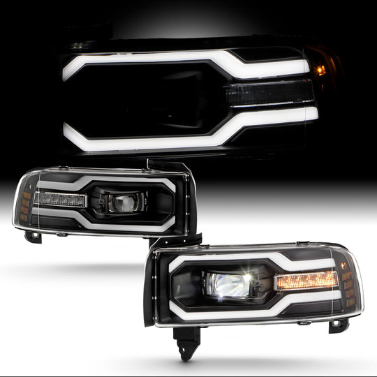 AKKON - Fit 1994-2001 Dodge Ram 1500|2500|3500 94-02 Full LED Projector Headlights With Light Bar Black Housing Driver Passenger Side Assembly