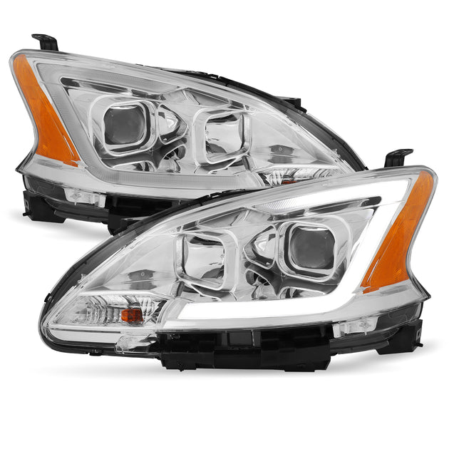 AKKON - Fits 2013 2014 2015 Sentra LED DRL Projector Front Chrome Clear Headlights Headlamps Pair Left + Right