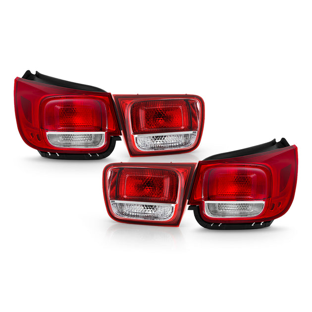 AKKON - Fits 2013-2015 Chevy Malibu LS / LT / Eco Truck Lid [Non-LED] Chrome Red Tail Lights Inner+Outer left + Passenger 4Pcs