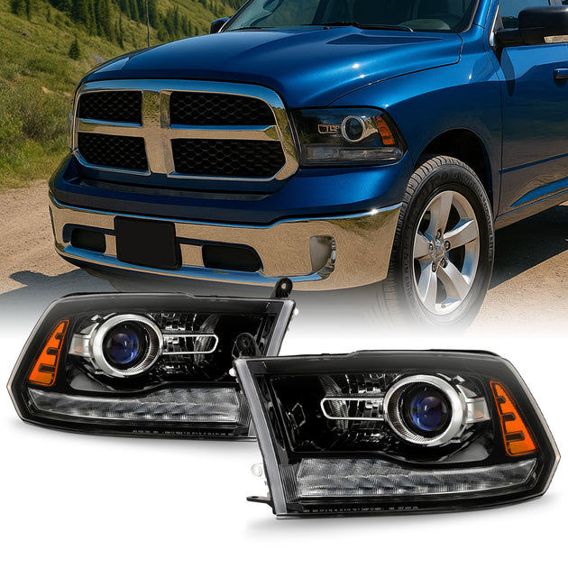 AKKON - Fits 2013-2015 Ram 1500 / 2500 /3500 OE Projector Headlights Black Housing w/ LED DRL - Pair Assembly