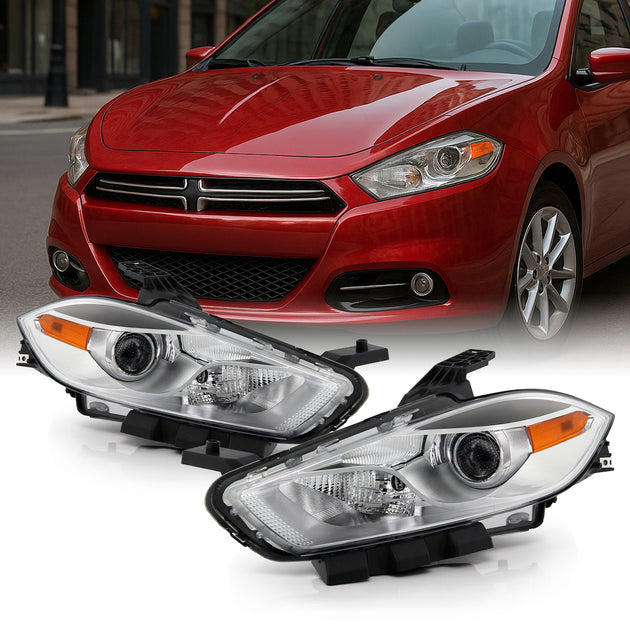 AKKON - Fits 2013-2016 Dodge Dart [Halogen Type] Projector Chrome Headlights Pair Driver Left+Passenger Right w/ Chrome Bezel