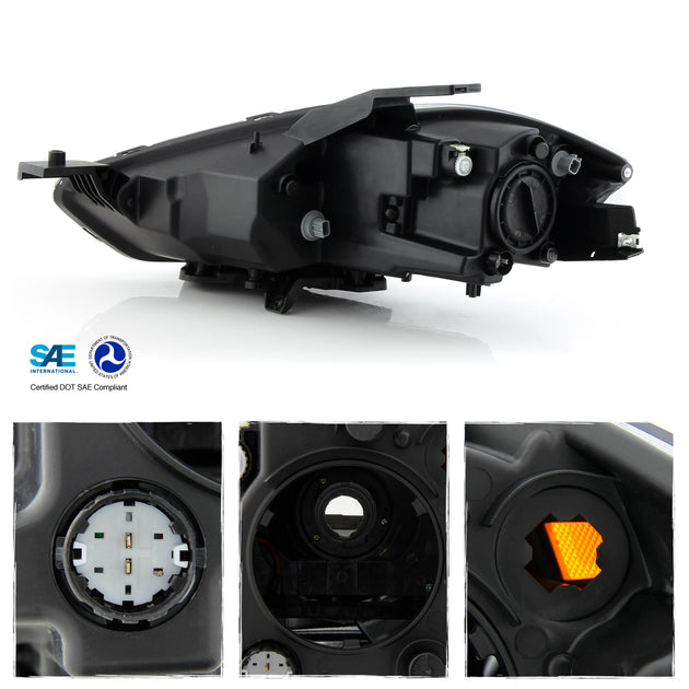 AKKON - Fits 2013-2016 Ford Escape SUV Halogen Type Black Headlights w/ Amber Side Headlamps Pair Replacement
