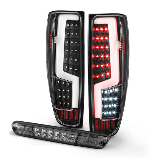 AKKON - Fits 04-12 Colorado Canyon 06 Isuzu i-280 i-350 07-08 i-290 i-370 Full LED Tube Black Tail Lights+Smoked 3Rd Brake Light