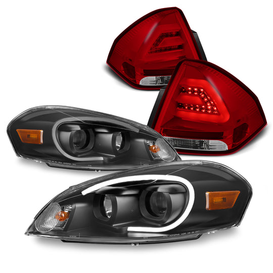 AKKON - Fits 06-13 Impala | 14-16 Impala Limited Black Light Tube Projector Headlamps + Red LED Tail Lamps