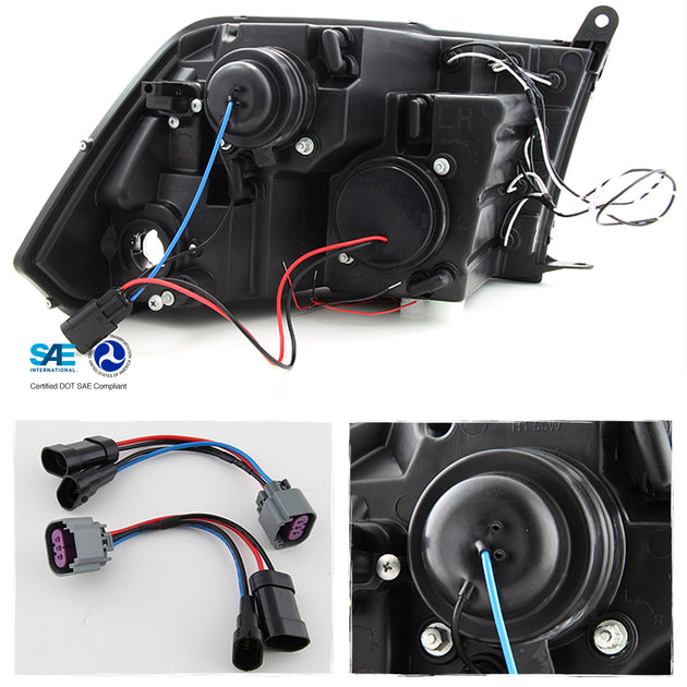 AKKON - Fits 2013-2018 RAM 1500 2500 3500 LED DRL [Dual Projector] Black Headlights+ LED Red Smoked Tail Lamp w/Wire Set