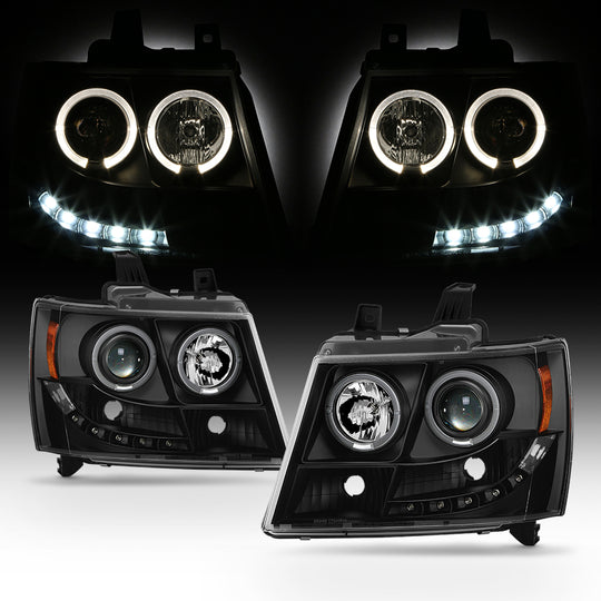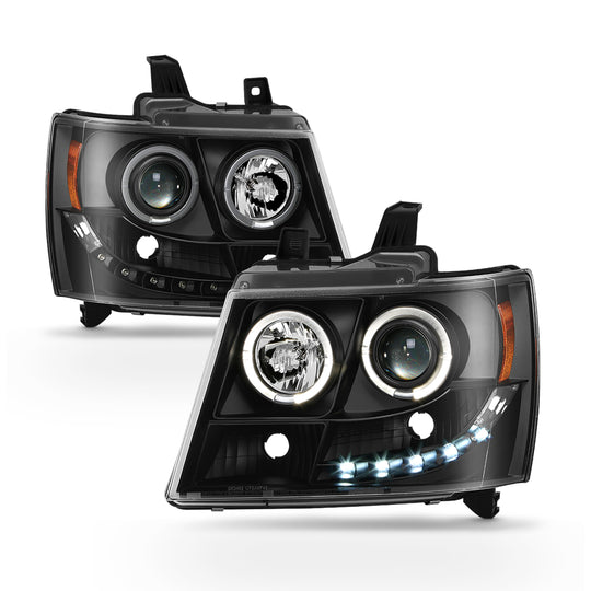 Regular price $158.99This is a 100% brand new pair of Replacement LED Halo Projector Headlights in Black Housing Clear Lens Compatible With: 2007-2013 Chevy Avalanche 2007-2014 Chevy Suburban 1500 / 2500 2007-2014 Chevy Tahoe Manufacturer Part Number: ,15950807... -