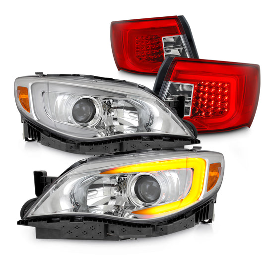 Regular price $454.87This is a 100% brand new pair of Headlights Replacement Assemblies in Polished Chrome Housing With Crystal Clear Lens, Tail Lights Assemblies in Chrome Red Housing With Crystal Clear Lens. Compatible With: Fit 2008-2011 Subaru Impreza... -