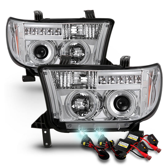 AKKON - Fits 07-13 Toyota Tundra 08-17 Sequoia Dual Halo Projector LED Headlights Pair + 8000K HID