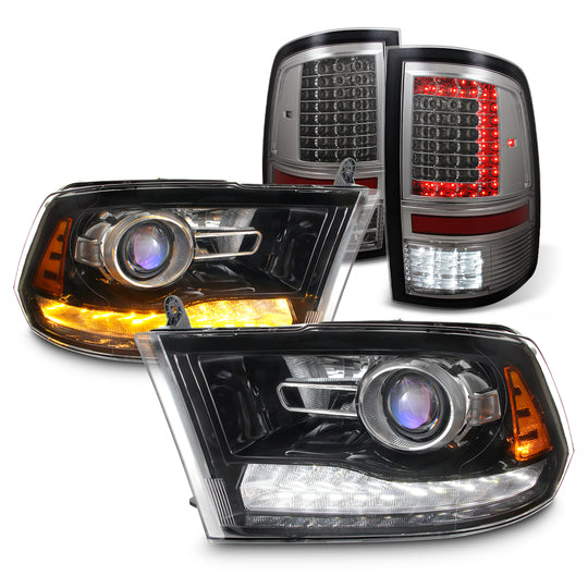 Regular price $358.99This is a 100% brand new pair of Headlights Replacement Assemblies in Polished Black Housing With Crystal Clear Lens, Tail Lights Assemblies in Smoke Housing And Crystal Clear Lens.Compatible With: 2009-2018 Ram 1500 2010-2018 Ram 2500/3500... -