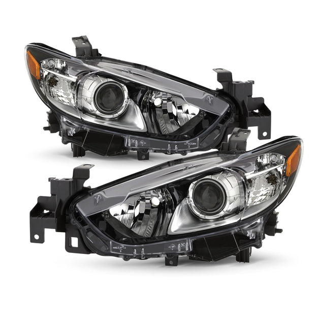 AKKON - Fits 2014 2015 2016 2017 Mazda 6 Sedan [Halogen Type] Projector Black Headlights Pair Driver Left + Passenger Right