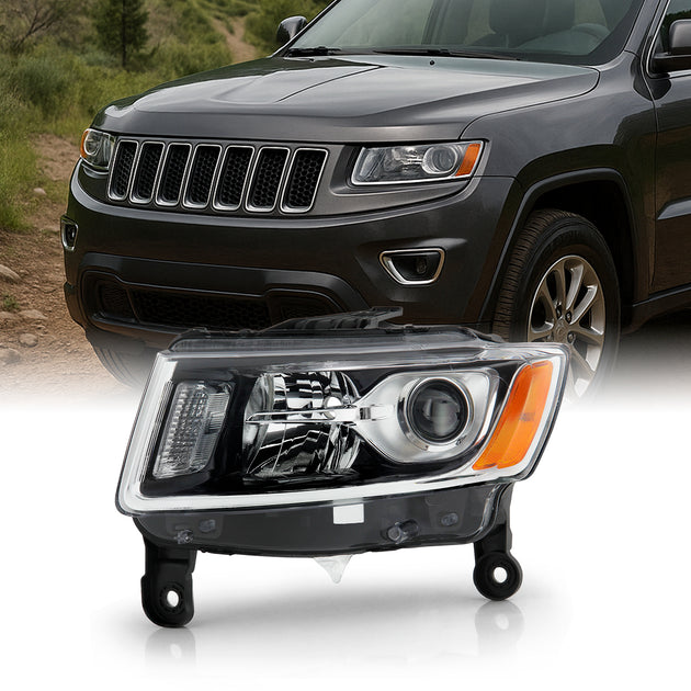 AKKON - Fits 2014 2015 2016 JEEP Grand Cherokee [Halogen Type] Projector Chrome Headlight Headlamp Driver Left Side Replacement