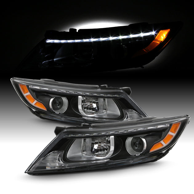 AKKON - Fits 2014-2015 Optima [Halogen Type] Projector Black Headlights w/o LED Position Light Pair Driver + Passenger Side