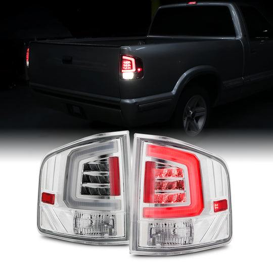 AKKON - Fits 1994-2004 Chevy S10 Pickup GMC Sonoma 96-00 Isuzu Hombre DRL LED Tube Chrome Tail Lights Pair Left+Right