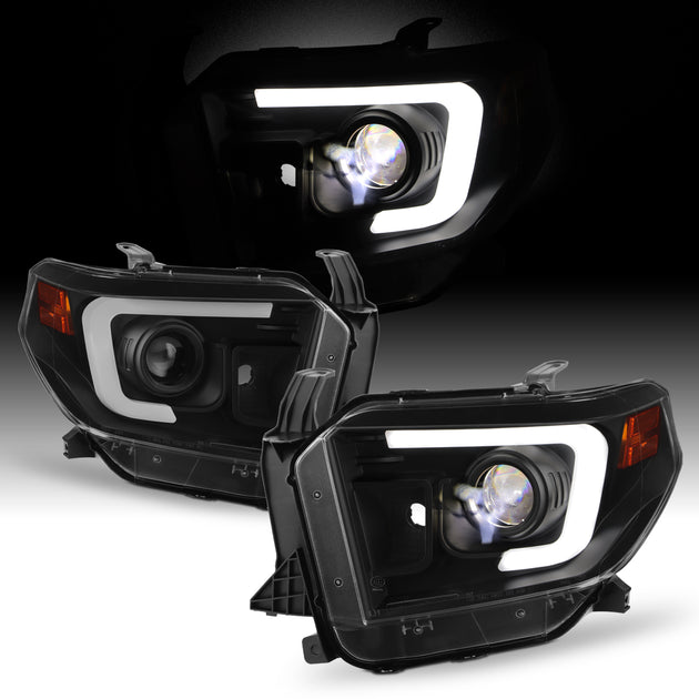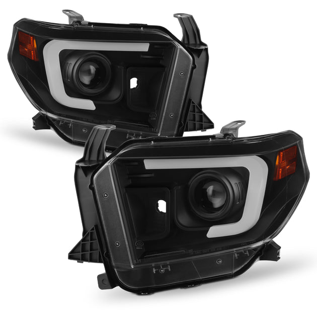 AKKON - Fits 2014-2017 Toyota Tundra Limited SR SR5 SUV [Built-In LED] Tube Parking Projector Black Headlights Pair Left+Right