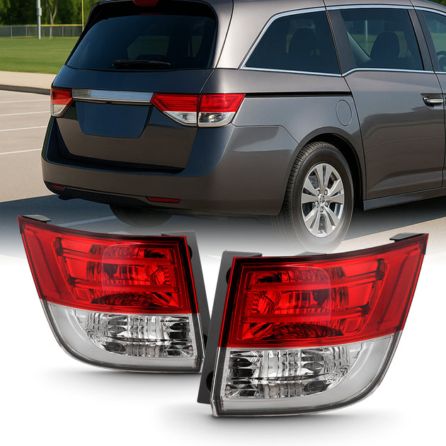 AKKON - Fits 2014-2017 Honda Odyssey [Halogen Type] Chrome Red Tail Lights Outer Pair Driver Left + Passenger Right