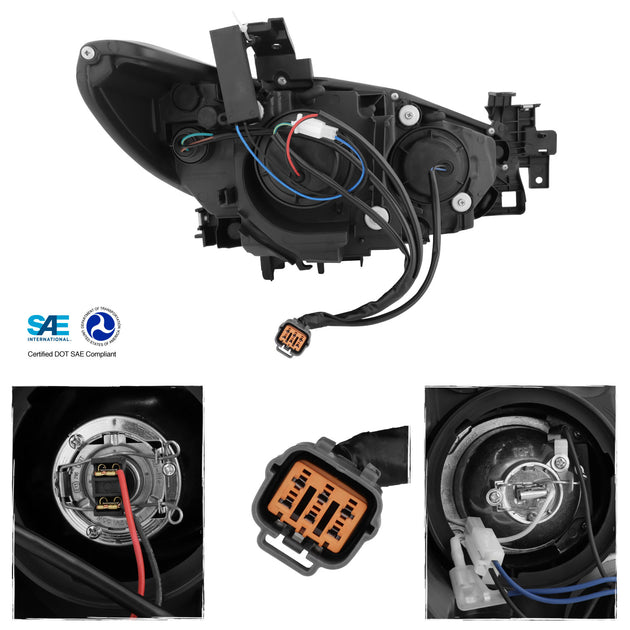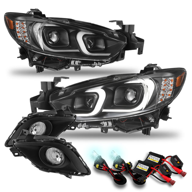 AKKON - Fits 2014-2017 Mazda 6 LED DRL Light Bar Projector Headlights & Fog Lamps -Chrome Housing w/ 8000K HID Dit