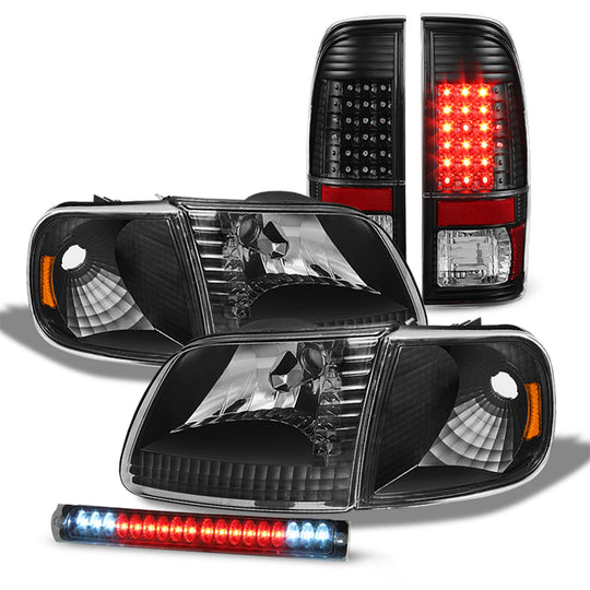 AKKON - Fits 1997-2003 F150 2004 F-150 Heritage 1997-1999 F250 Black Headlights + Blk LED Tail Lamp + 3Rd Brake Bumper Lamp