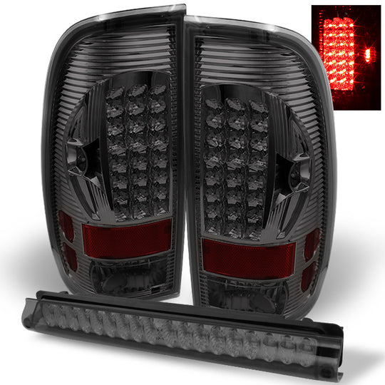 AKKON - Fits 1997-2003 F-150 / 2004 F150 Heritage Truck Styleside Smoked LED Tail Light + LED Smoked 3rd Brake Lamp Combo