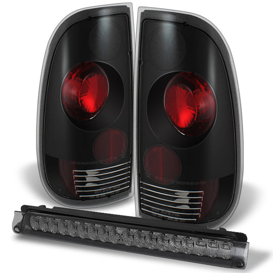 AKKON - Fits 1997-2003 Ford F-150 97-99 F250 Styleside Pickup Truck Black Bezel Tail Light + Smoked LED 3rd Brake Light Combo