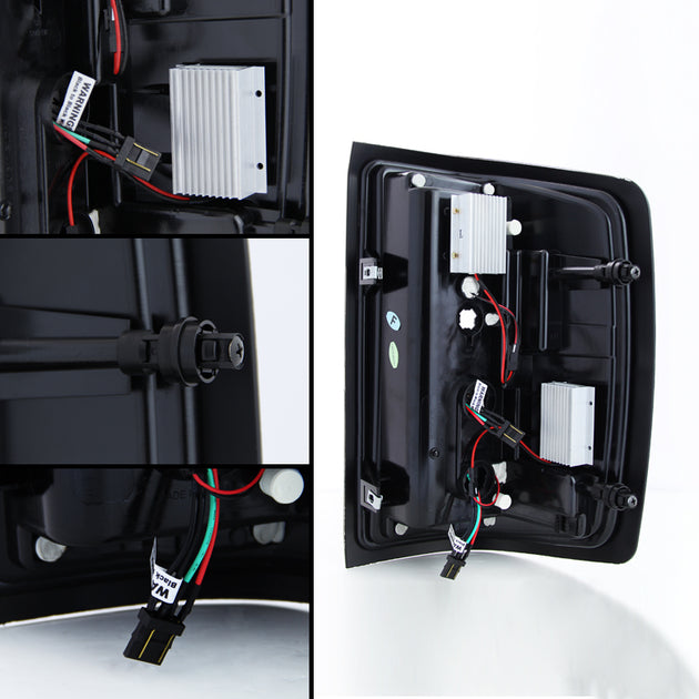 AKKON - Fits 2014-2019 Chevy Silverado 1500 | 15-19 2500 3500 HD LED Tube Black Tail Lights + LED 3rd Cargo Brake Lamp