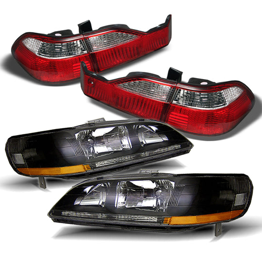 AKKON - Fits 1998-2000 Honda Accord 4Door Sedan Black Headlights + Red Clear Tail Brake Lamp w/ Trunk Piece Pair Replacement