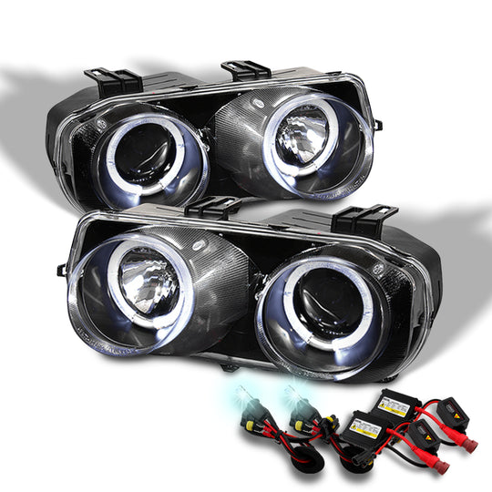 AKKON - Fits 1998-2001 Acura Integra LED Dual Halo DRL Projector Headlights in Black Housing + 8000K HID Kit
