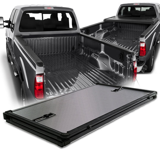 AKKON - Fits 1998-2016 Ford F250/F350/F450/F550 Superduty 78 Inches 6.5-Feet [Hard Tri-Fold Style] Black Tonneau Cover