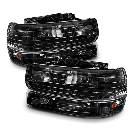 AKKON - Fits 1999-2002 Chevy Silverado 2000-2006 Suburban 1500 / 2500 Tahoe Black Headlights+ Bumper Turn Signal Lamp Pair LH+RH