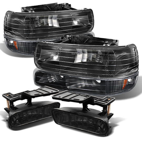 Regular price $95.99This is a 100% brand new pair of Replacement Black Housing Headlights+ Bumper Lamp+ Smoked Fog Lights Compatible With: 1999-2002 Chevy Silverado 1500/ 1500 HD/ 2500/ 2500 HD/ 3500 2000-2006 Chevy Suburban 1500/ 2500 2000-2006 Chevy... -