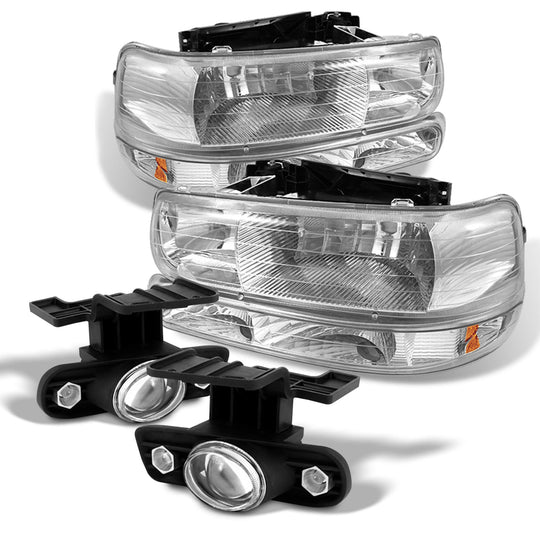 AKKON - Fits 1999-2002 Chevy Silverado 1500HD/ 2500HD 2000-2006 Suburban 1500/ 2500 Tahoe Chrome Headlights+ Clear Fog Lamp Pair