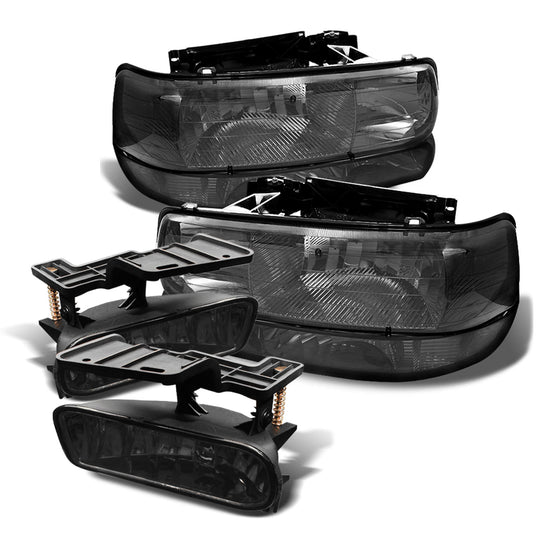 AKKON - Fits 1999-2002 Chevy Silverado 1500HD/ 2500HD 2000-2006 Suburban 1500/2500 Tahoe Smoked Headlights + Clear Fog Lamp Pair
