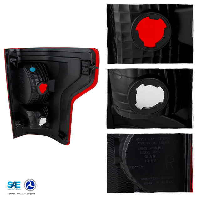 AKKON - Fits 2015 2016 2017 Ford F-150 Pickup Truck [Halogen Type] Red Clear Tail Light Brake Lamp Driver Left Side