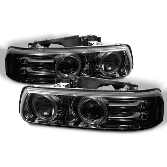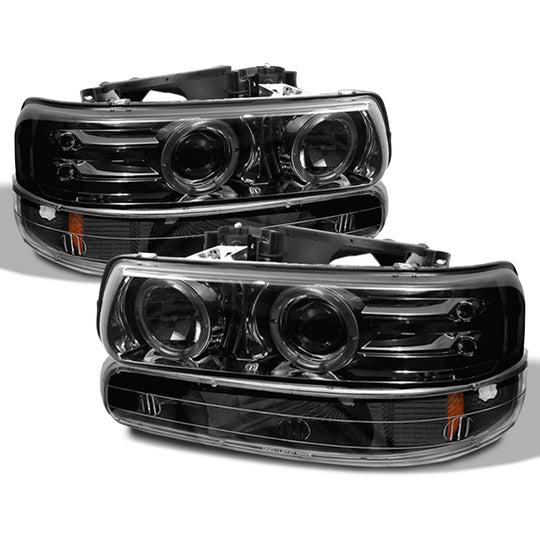 AKKON - Fits 1999-2002 Silverado 2000-2006 Suburban Tahoe Dual Halo Headlights + LED Bumper Lamps - Smoke Housing